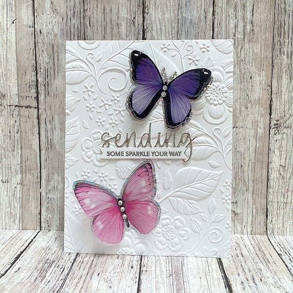 Twilight Butterflies Sticker is a sheet of seven dimensional butterflies. They can pop off the pages with beautiful, detailed wings in shades of blues and purples. Foil outlines the shape to give them more interest.