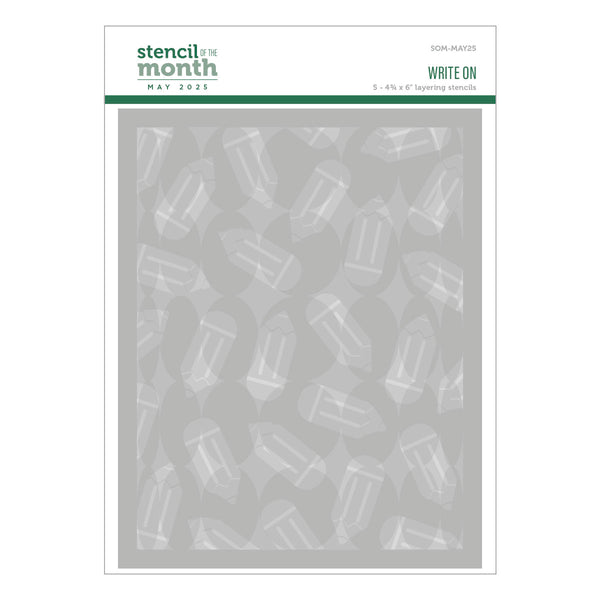 Write On - May 2025 Stencil of the Month: Celebrate creativity and learning with the “Write On” stencil from our May 2025 Stencil of the Month collection. This fun and playful stencil features a scattered pencil pattern—perfect for crafting cards, tags, and gifts for students, teachers, writers, or anyone who loves stationery.
