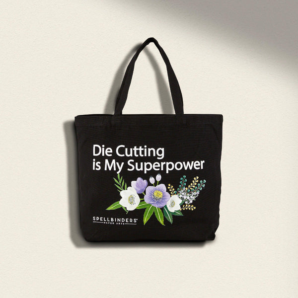 Die Cutting is My Superpower - Tote-bag: Unleash your creative spirit with our "Die Cutting is My Superpower" Tote Bag! Crafted from durable, eco-friendly fabric, this black tote combines functionality with artistic flair. Featuring a bold statement and vibrant floral design, it’s the perfect companion for crafters on the go. Whether you’re heading to a workshop, shopping for supplies, or just showing off your passion, this tote is both stylish and practical. Spacious enough to carry your crafting essentials, it’s a must-have for any die-cutting enthusiast. Celebrate your superpower with this beautifully designed tote!