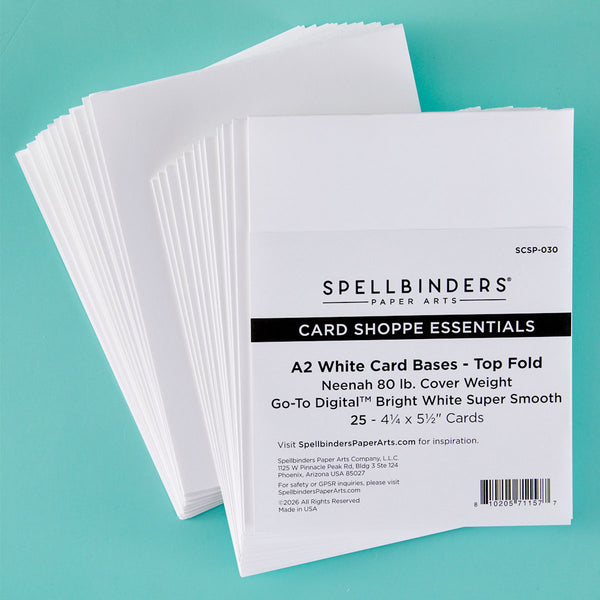 A2 White Card Bases - Top Fold (25 pack) is made from high quality Neenah 80# Cover Weight Bright White Super Smooth Cardstock. Contains 25 top fold card bases. Each card measures 4.25 x 5.50 in./10.80 x 14.00 cm.