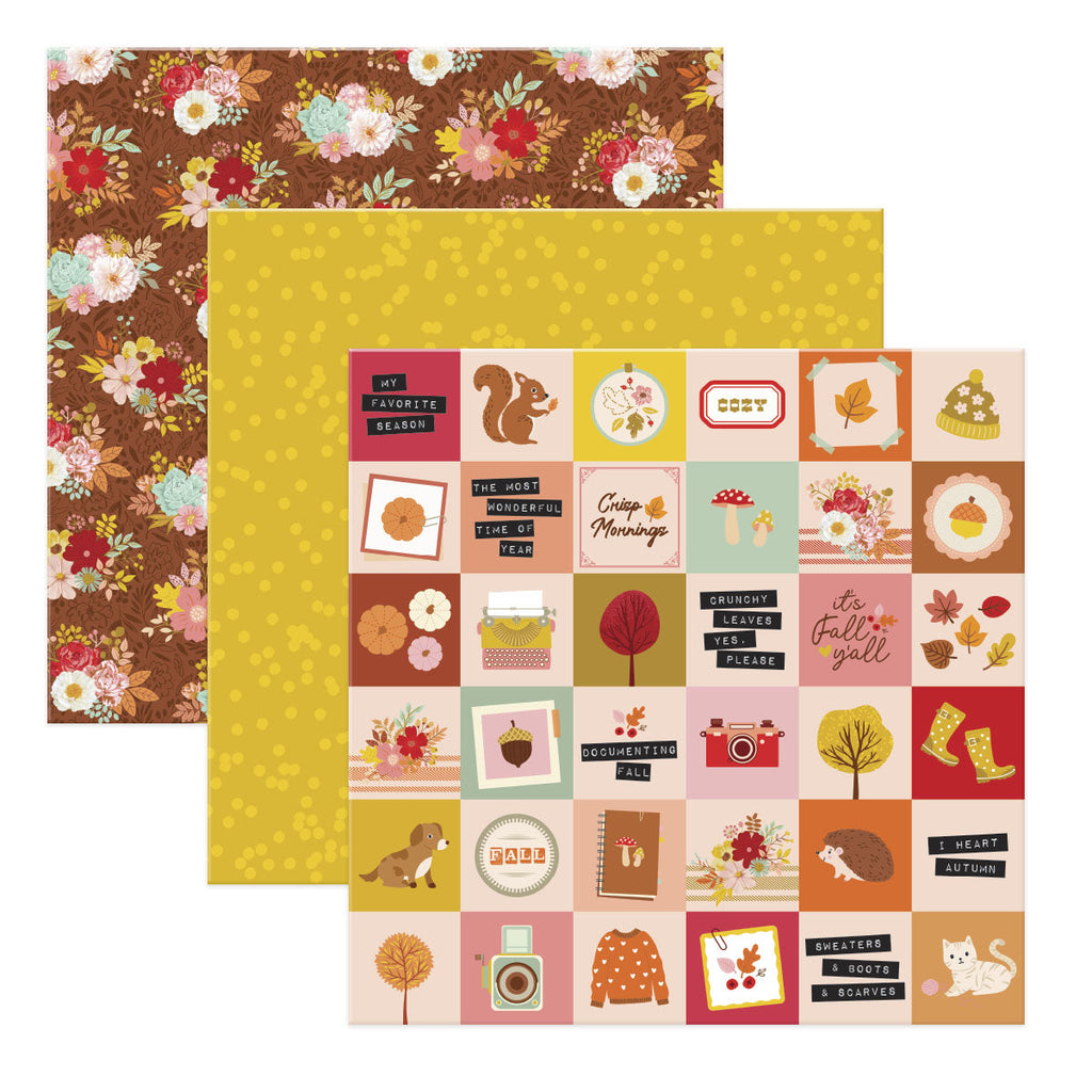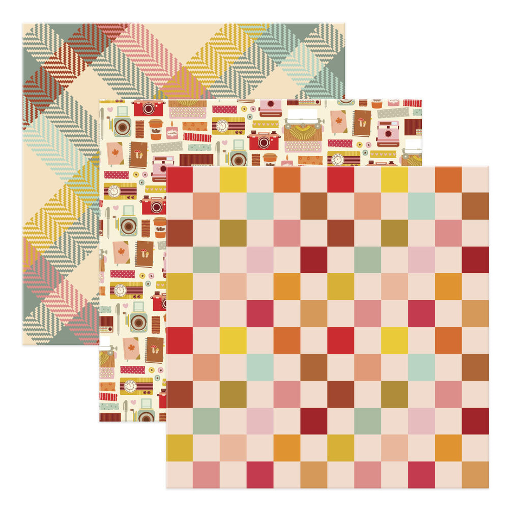 Autumn Archives 12 x 12" Paper Pack is a pack of 24 patterned paper sheets with two each of 12 designs. Autumn Archives Collection by Kelly Bangs is a season of sweater weather and cozy fall colors. A wonderful time to document those memories of warm gatherings and blessed moments!