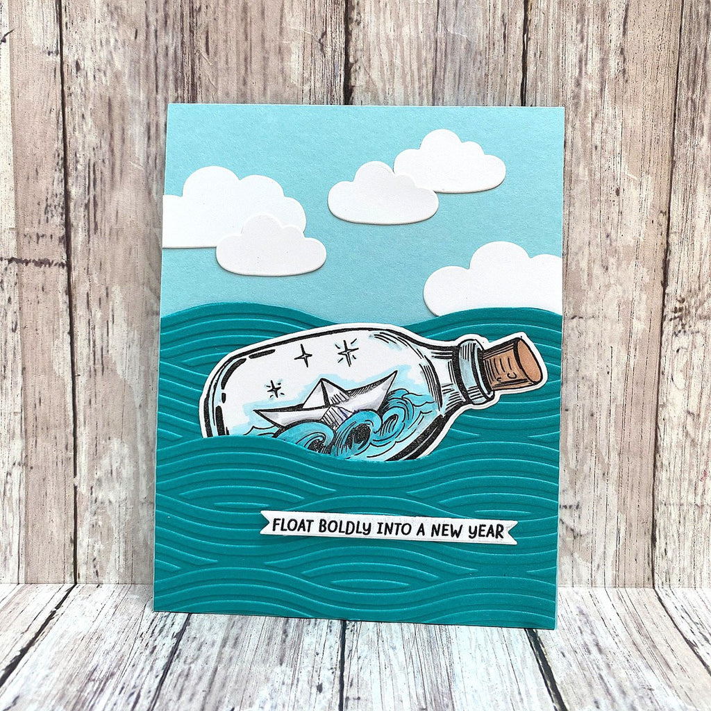 The dies let you effortlessly cut out stamped images like the paper sailboat and ship-in-a-bottle, along with banners for highlighting your favorite sentiments. Build dimensional projects, mix with other ocean-inspired kits, or keep things clean and simple—the versatility of this set ensures endless creative possibilities. A delightful way to bring charm and polish to your handmade creations.