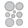 Postage Edge Circles Etched Dies are from the Postage Edge Shapes Collection by Becca Feeken and has eight thin metal cutting dies. For a subtle WoW factor, stack them with complementary circle shapes that has finishing edges like her Fluted Classics or Hemstitch Collection and others alike.