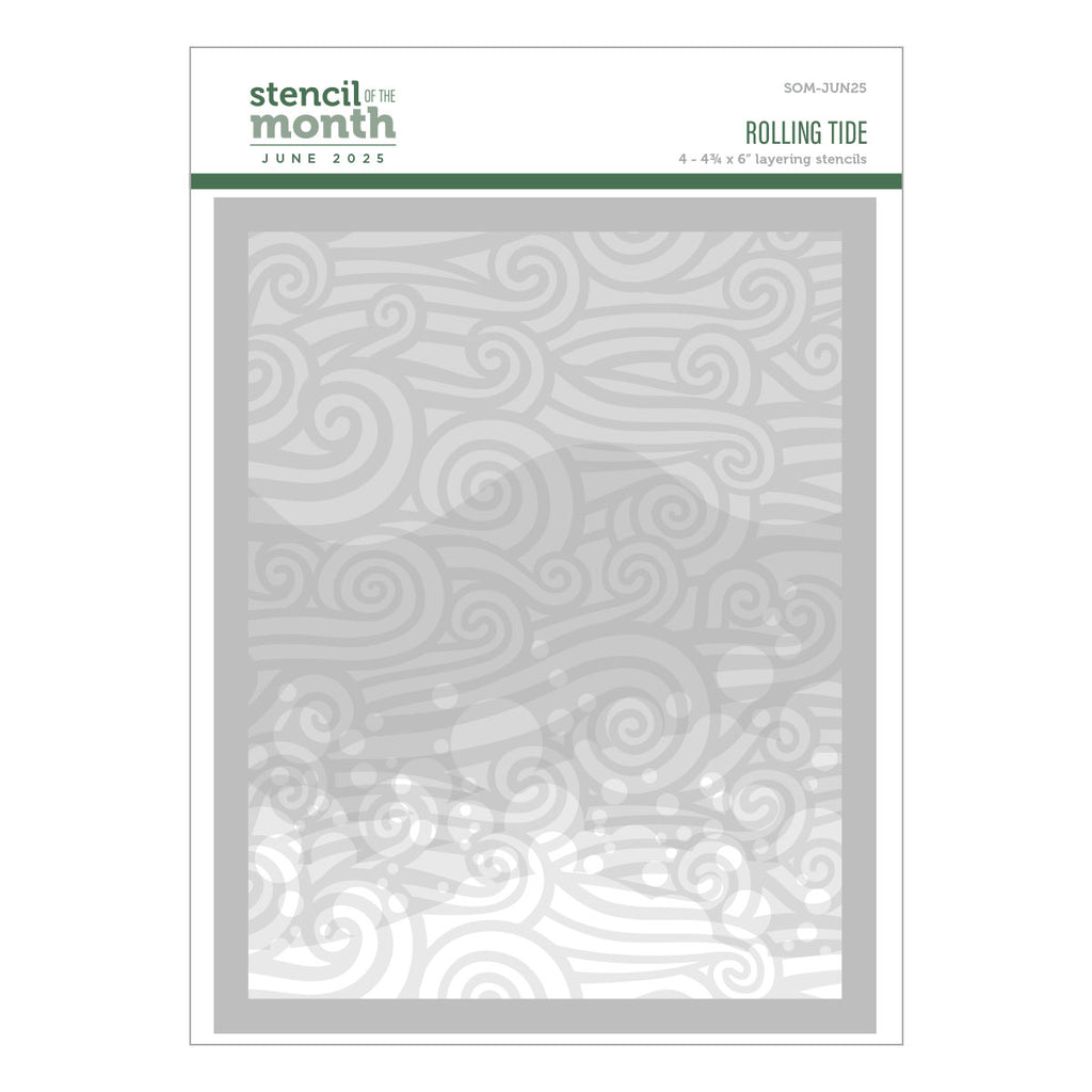 Rolling Tide – June 2025 Stencil of the Month - Make waves in your next project with the “Rolling Tide” stencil from our June 2025 Stencil of the Month collection! This dynamic 4-piece layering stencil set features swirling currents, cresting waves, and bubbling foam—perfect for summery seascapes and ocean-themed designs.