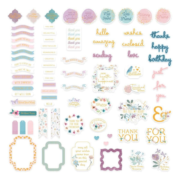 Floral Friendship Printed Die Cut Sentiments are from the Floral Friendship Collection and contains 154 die cuts. It is full of wonderful sentiments accented with flowers, banners, wreaths, label shapes and more! These will be a perfect way to add the finishing touch to your card creations!
