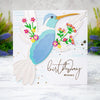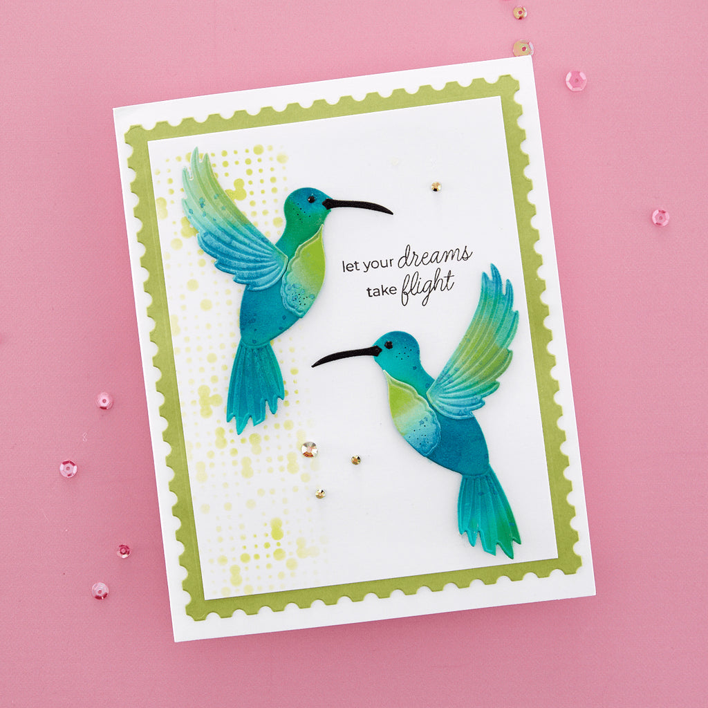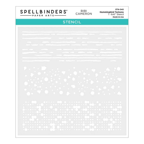 Hummingbird Textures Stencil is from Bibi’s Hummingbirds Collection by Bibi Cameron. It’s a 6 x 6-inch mylar stencil sheet that has three different background designs. Each has a distinctive pattern: lines, random dots, and a dots grid. Add them individually or a combination for a contemporary backdrop or to add movement behind the hummingbird. It’s a fun addition for your creative needs!