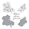 Cherry Blossoms BetterPress Plate & Die Set is from the Spring in Kyoto Collection by Alex Syberia Designs. The two plates impress two cherry blossom clusters in full bloom and a sentiment, Bloom Where You Are. Each has a corresponding die to cut out. Ink the plates with the BetterPress Ink to be pressed against the BetterPress Cotton Card Panel and Sheets for a crisp letterpress design.