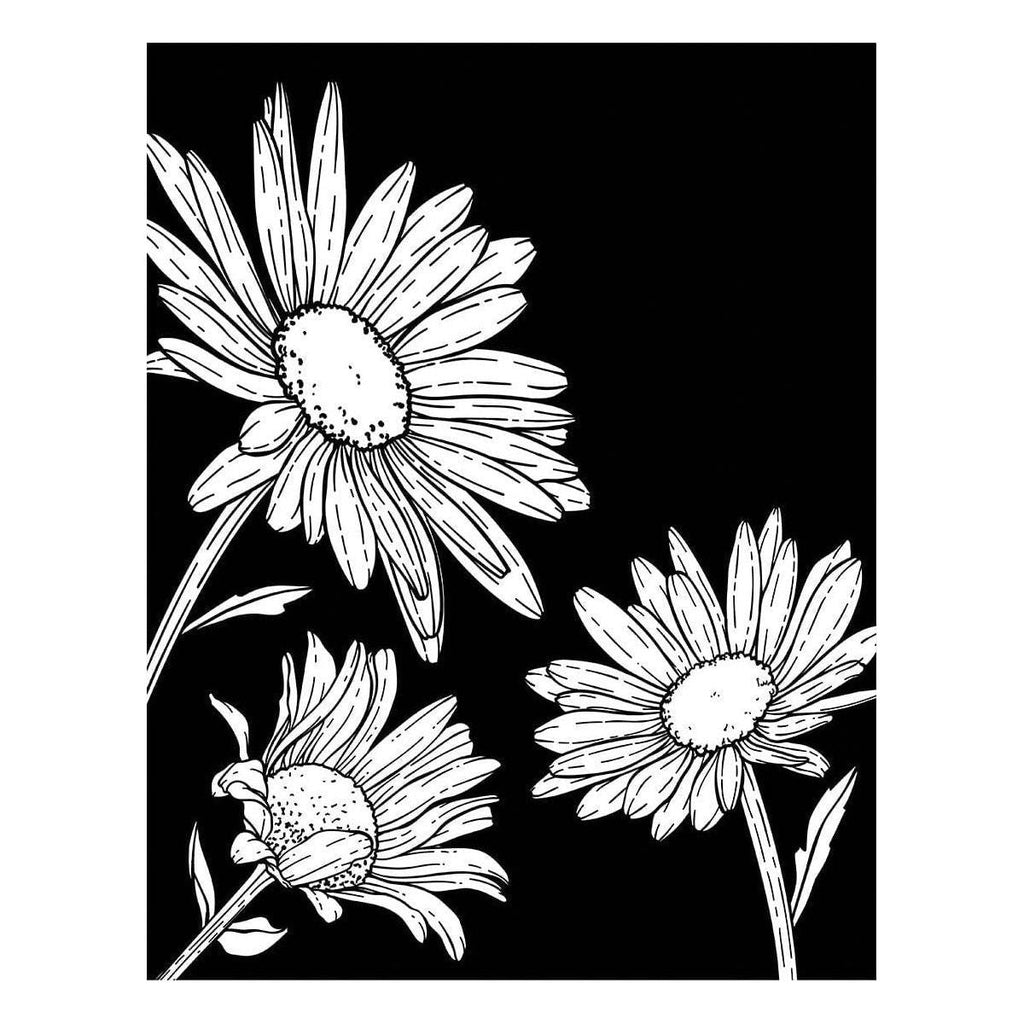 Daisy Trio Press Plates are from Yana's Daisies Collection by Yana Smakula. This sweet plate presses three full bloom daisies on an A2-size (4.25 x 5.5 inch) card front. To add more depth, use the coordinating stencil available in BD-0946 Daisy Trio BetterPress and Stencil Bundle to add color with inks, paints and paste mediums. Ink the plates with the BetterPress Ink to be pressed against the BetterPress Cotton Card Panel and Sheets for a crisp letterpress design.