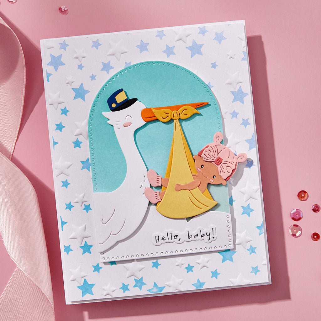Falling Stars BetterPress Plate is part of the Little Smiles Collection. This one plate presses an all over design of stars in different sizes. Use with E3D-120 Wishing Stars 3D Embossing, it’s specifically designed to allow for the embossed and the pressed stars to work together for a more robust star background in two different mediums. What a unique design! We also have both in a bundle, BD-0919 Wishing and Falling Stars 3D Embossing Folder and BetterPress Bundle. Ink the plates with the BetterPress Ink to be pressed against the BetterPress Cotton Card Panel and Sheets for a crisp letterpress design.
