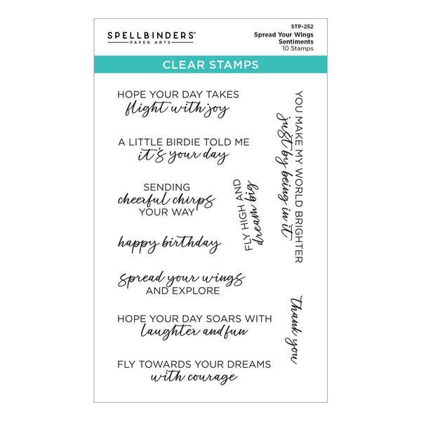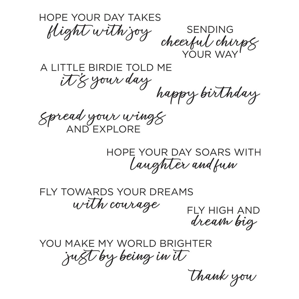 Spread Your Wings Sentiments Clear Stamp Set is from the Cheerful Chirps Collection. This set of 10 clear stamps have sentiments that cover an array of friendship and birthday greetings. Perfect to go with this collection. Each sentiment has a mix of uppercase type font with a sweet lowercase hand scripted font. They are made in the USA with high-quality polymer for perfect impressions every time. Designed to be used with a clear stamp block.