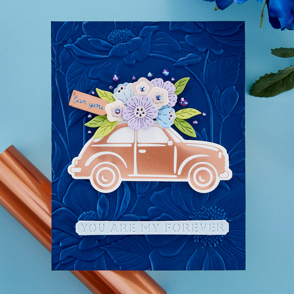 (Plates & Dies Only). This Glimmer Hot Foil Plate Set adds stunning foiled solid shape background and florals to cards and projects. Released January 2023 to our Glimmer Hot Foil Kit of the Month Club, it is a wonderful addition to your glimmer collection. Perfect for creating year round, all occasion greeting cards, Décor, gifts, and more! Glimmer Hot Foil Plates are designed to be used with the Spellbinders