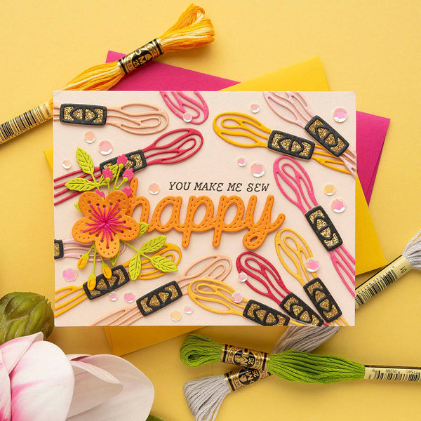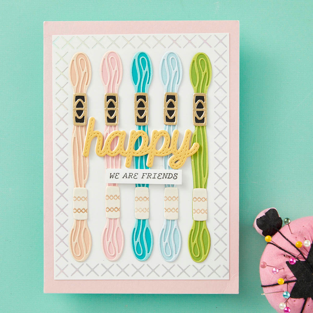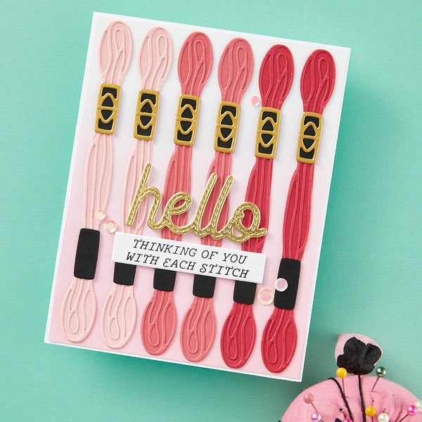 Faux Stitched Sentiments & Floss - Small Die of the Month! This 9-piece Die Set released April 2024 to our Small Die of the Month Club creates a variety of beautiful card fronts. Use to create cards, décor, gift card holder, gifts, and more!