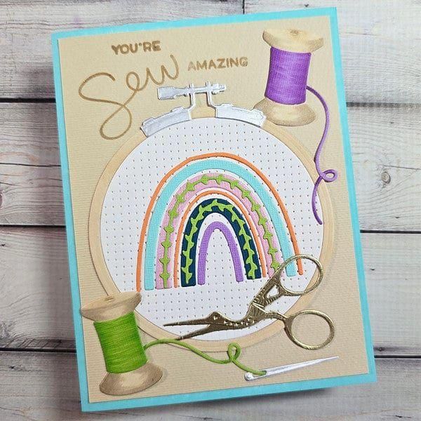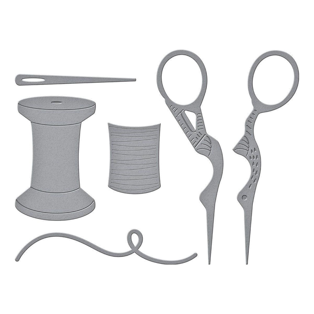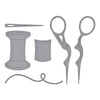 Needleworker Tool Kit Etched Dies are part of the Nichol's Needlework Collection by Nichol Spohr. The six thin metal cutting dies creates a lovely set of sewing accessories, including a sweet pair of embroidery scissors, a spool of thread and of course, a needle! Perfect for a card front, scrapbook page or other projects - or to coordinate with the other die sets in this collection for the perfect finishing touch.