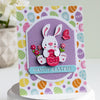 Bunny Buddies Etched Dies are part of the Happy Spring Collection by Simon Hurley. If you love bunnies and spring, this set of 28 thin metal cutting dies will make your heart happy! There are several ways to position the bunnies, from sitting, kicking up, and even a side profile. Also included are spring-themed designs like decorated eggs, basket, bow, flowers, grass and more. Add in one of two sentiments to your project – Happy Easter and Happy Spring. Lots packed into this set!