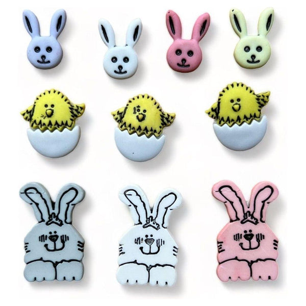 Funny Bunny Buttons by Buttons Galore & More includes 10 buttons of silly spring creatures, including two kinds of rabbits and even little chicks. So cute for accenting all your spring projects! These buttons are great for embellishing and adding texture to cards, scrapbook pages, needleart and other crafts.