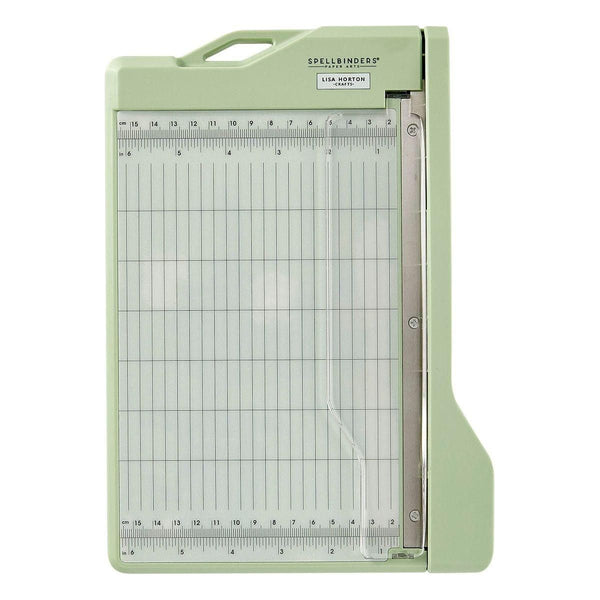 Lisa Horton Crafts - Guillotine Paper Trimmer cuts cardstock in a cutting space of 8.50 x 6.25 in./22.00 x 15.50 cm. There is a finger guard that allows you to hold the paper in place and protect your fingers while cutting. Its rubberized feet to keep the trimmer in place while in use. Measurement grids on the trimmer base are in ¼-inch increments and is easy to read in English and Metric units. The handle locks into place when not in use. The beautiful green-colored trimmer’s compact size makes it easy to use in smaller craft spaces or while crafting on the go!