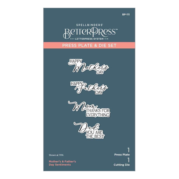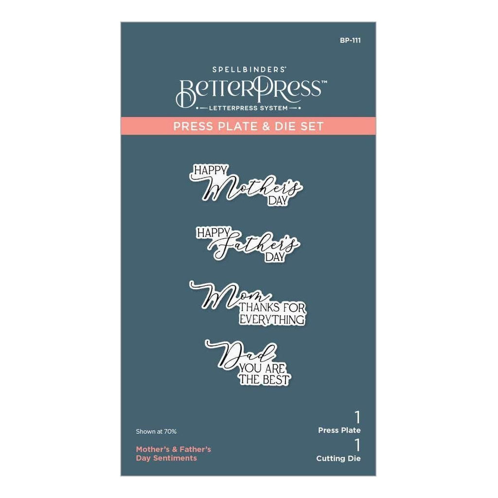 Mother's & Father's Day Sentiments Press Plate is part of the Mirrored Arch Collection. There is one press plate that presses four sentiments at the same time: two for Mother’s Day and two for Father’s Day. There is a corresponding thin metal cutting die that will cut those sentiments at the same time. Ink the plates with the BetterPress Ink to be pressed against the BetterPress Cotton Card Panel and Sheets for a crisp letterpress design.