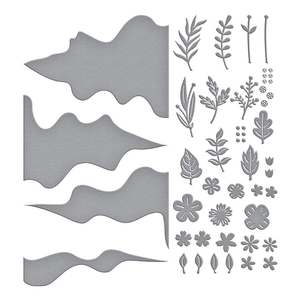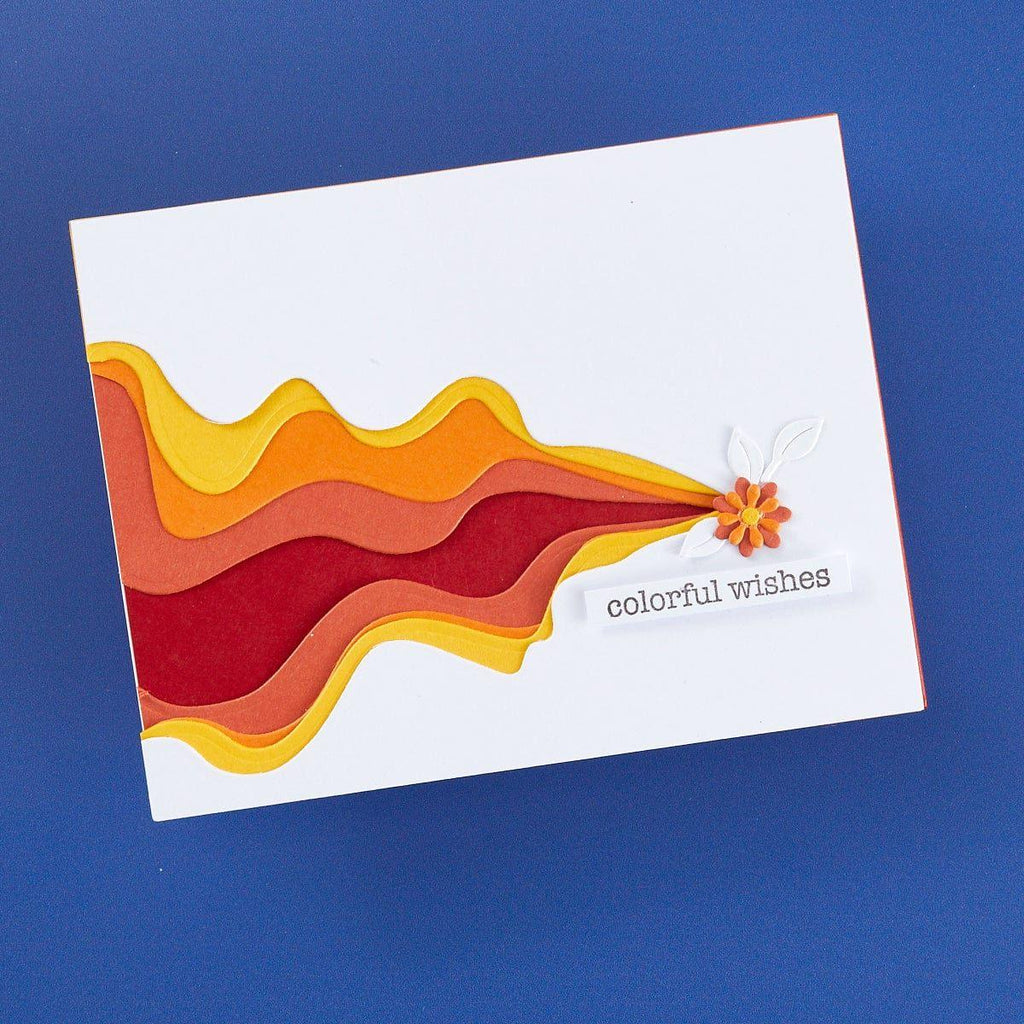 Rainbow Slice Tunnel Etched Dies are part of the Tunnel Scapes Collection by Vicky Papaioannou. This fun set is not your typical tunnel but like a slice or V-shape. Add vibrant colors of the rainbow in the different slice sizes. Get crazy and tuck in bold colorful blooms which are also included in this set of 31 thin metal cutting dies. So many ideas! This unique offering creates many tunnel sceneries from the ocean to the sky, and everything in between.