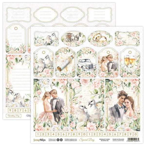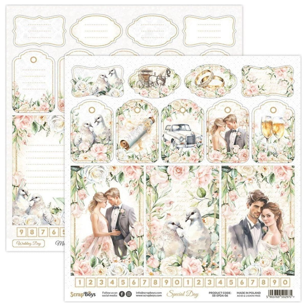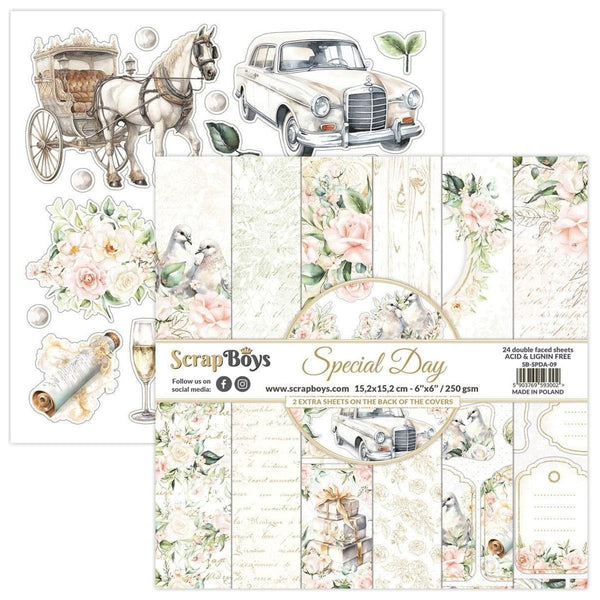 Elevate your special occasions with the "Special Day" Scrapbook Paper Set by ScrapBoys. This exquisite collection includes 24 double-sided sheets (plus two extra bonus sheets), each adorned with vintage designs featuring elegant carriages, classic cars, delicate roses, and timeless patterns. Crafted from premium 190 gsm, acid-free, and lignin-free paper, these 6" x 6" sheets are perfect for adding a touch of romance and sophistication to your wedding or anniversary projects. Create unforgettable memories with the unique and beautiful elements in this delightful scrapbooking set.