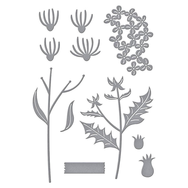 Field Notes Wildflowers Etched Dies are part of the Field Notes Collection. When assembled, this set of eight thin metal cutting dies makes two types of stemmed flowers (Baby’s Breath and Thistle). Use them in your card creations or add them as specimens into your field notes booklet with the tape die included in the set.