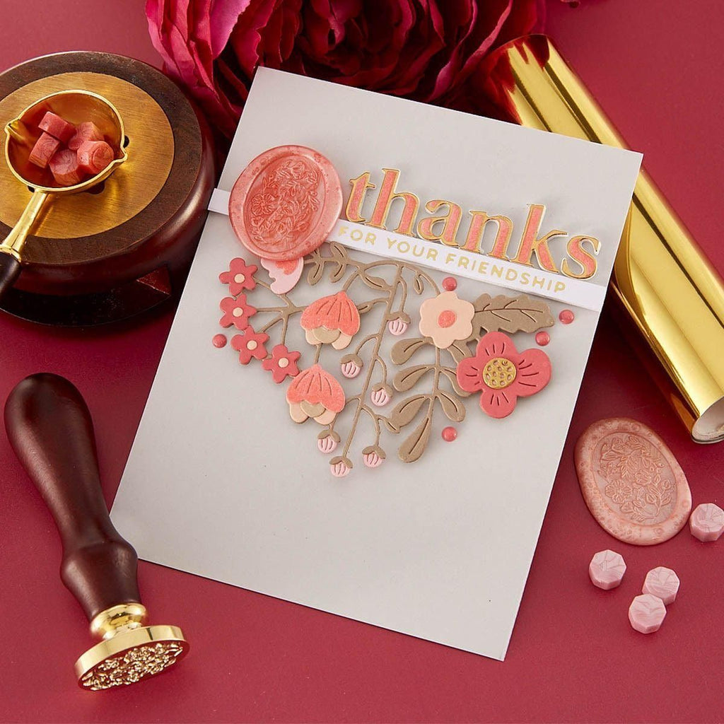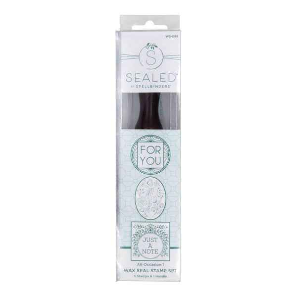 3 Pack Wax Seal Stamps - Set 1 is from the Sealed for Summer Collection. It includes three different shaped wax seal stamps, a circle (WS-067 Deco For You), a square (WS-071 Framed Just a Note), and an oval (WS-070 Oval Floral). The circle is an art-décor inspired For You sentiment. The square shape is an elegant botanical swag with a circled Just a Note sentiment. The oval is a sweet floral motif for any occasion theme. Add elegant and unique wax seal elements to your projects!