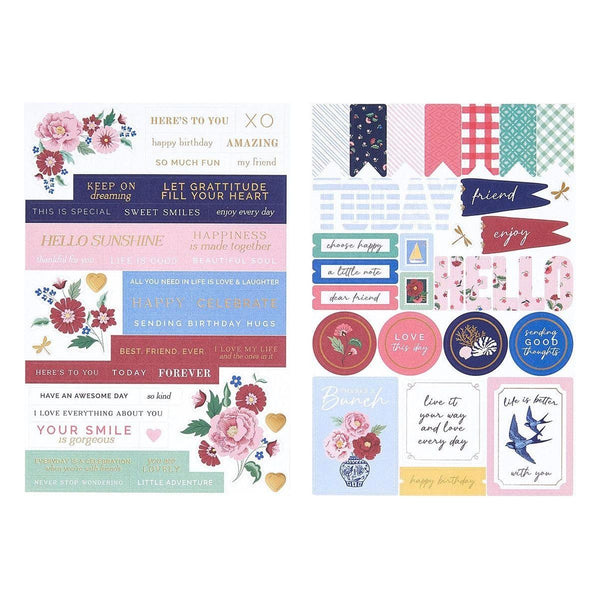 Add a sprinkling of summer to your scrapbook pages and cards with the Bayfair Cardstock Sticker Pack. This set of 2-shees of matte cardstock stickers include lots of playful seaside words and phrases, banners, flags and so much more! Sheet size 12.5 x 18.5cm.