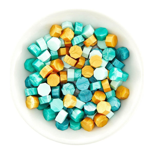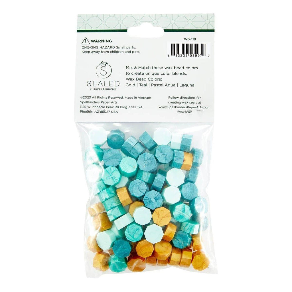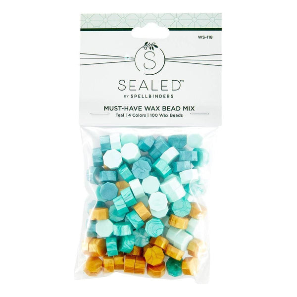 Must-Have Wax Beads Mix Teal are from the Sealed by Spellbinders Collection. The package contains 100 wax beads and comes in four colors of Gold, Teal, Pastel Aqua and Laguna. The entire bag can create approximately 25 seals. Use the WS-001 Wax Seal Kit to complete your wax seal ensemble. For other choices of wax bead colors, look to Spellbinders’ offerings in this collection.