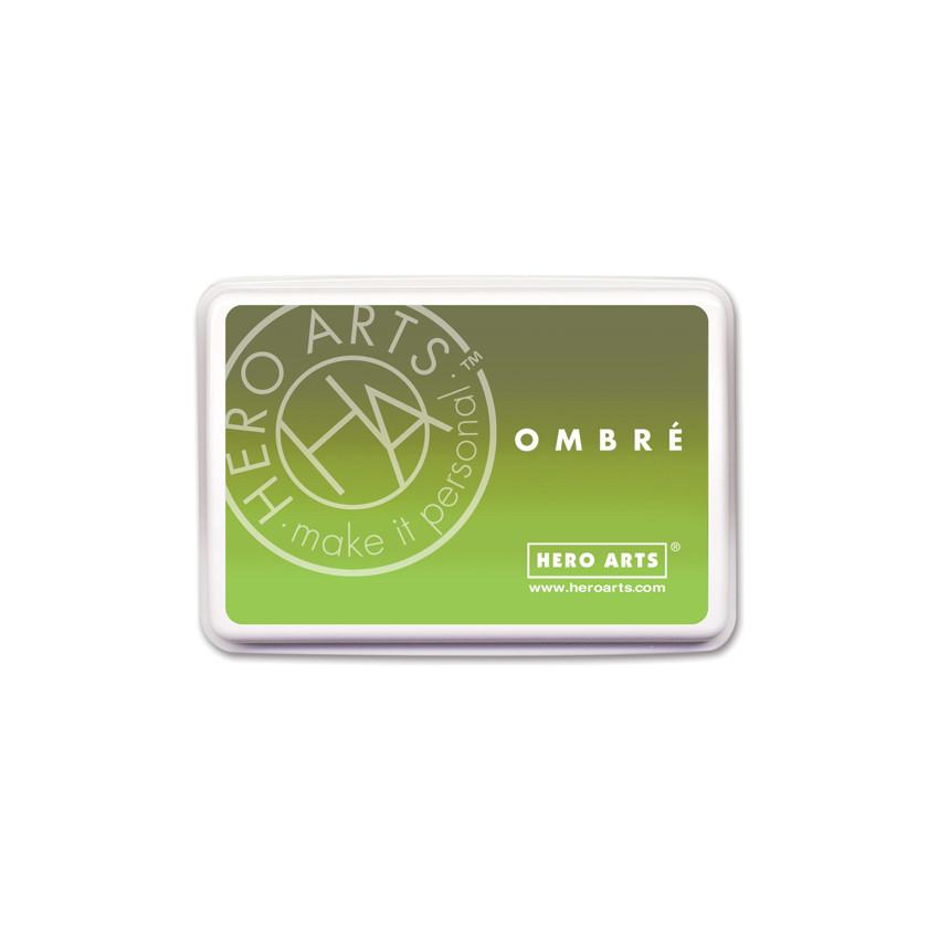 Hero Arts - Ombré Lime to Forever Green Ink Pad The Ombré Lime to Forever Green Ink Pad offers three complementary colors in a tart lime green palette in one raised pad. Use for a gradation of color in each stamping; by placing your stamp in different positions on the pad you can emphasize different color mixes. Our Ombrés come in Reactive, Dye, and metallic pigment varieties. Store ink pads flat in order to prevent colors from running together. They are North American made, acid-free, archival, and quick drying.