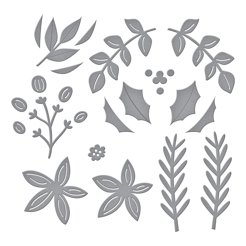 Christmas Foliage Etched Dies are part of the All About Christmas Collection by Lisa Horton. There are different ways to use this set of 12 thin metal cutting dies from making clusters, garland, accenting edges and more! A very versatile set!