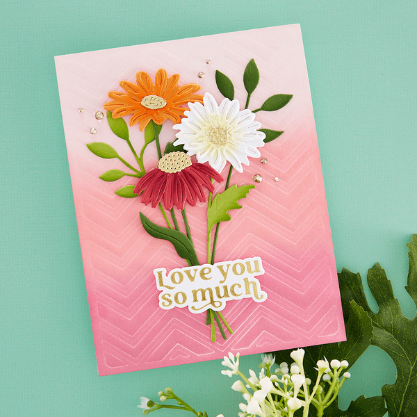 Must-Have Sentiments Glimmer Hot Foil Plate & Die Set is from the Photosynthesis Collection by Simon Hurley. A single plate foils six all occasion sentiments and its coordinating thin metal die cuts them all at once! Make several cards with a couple of movements! As the name says it is a must-have for card makers.
