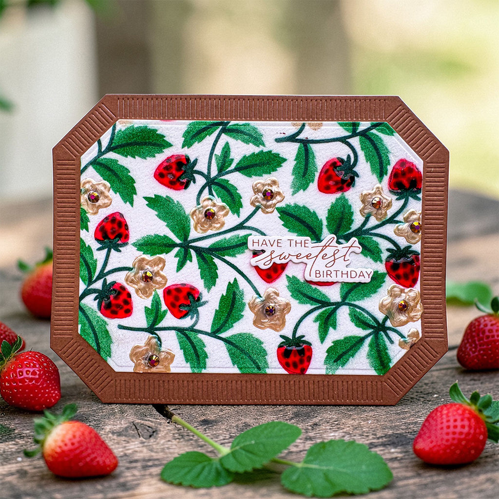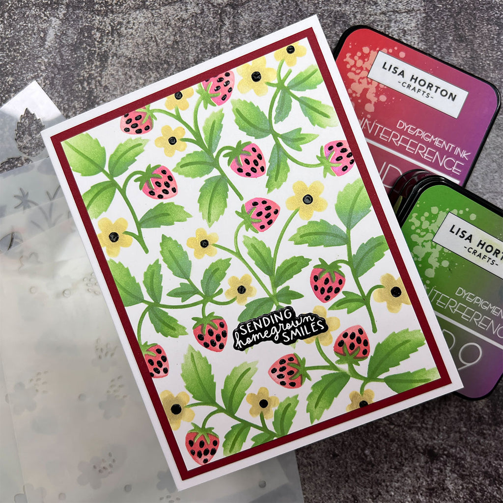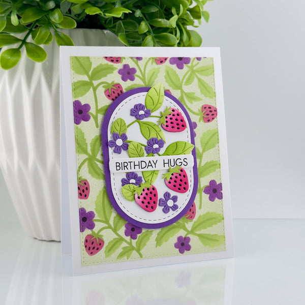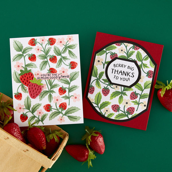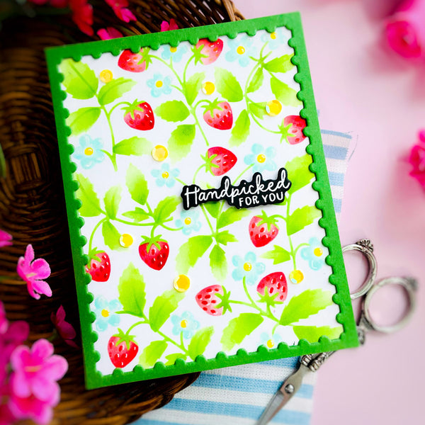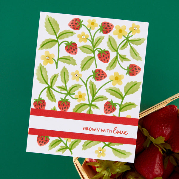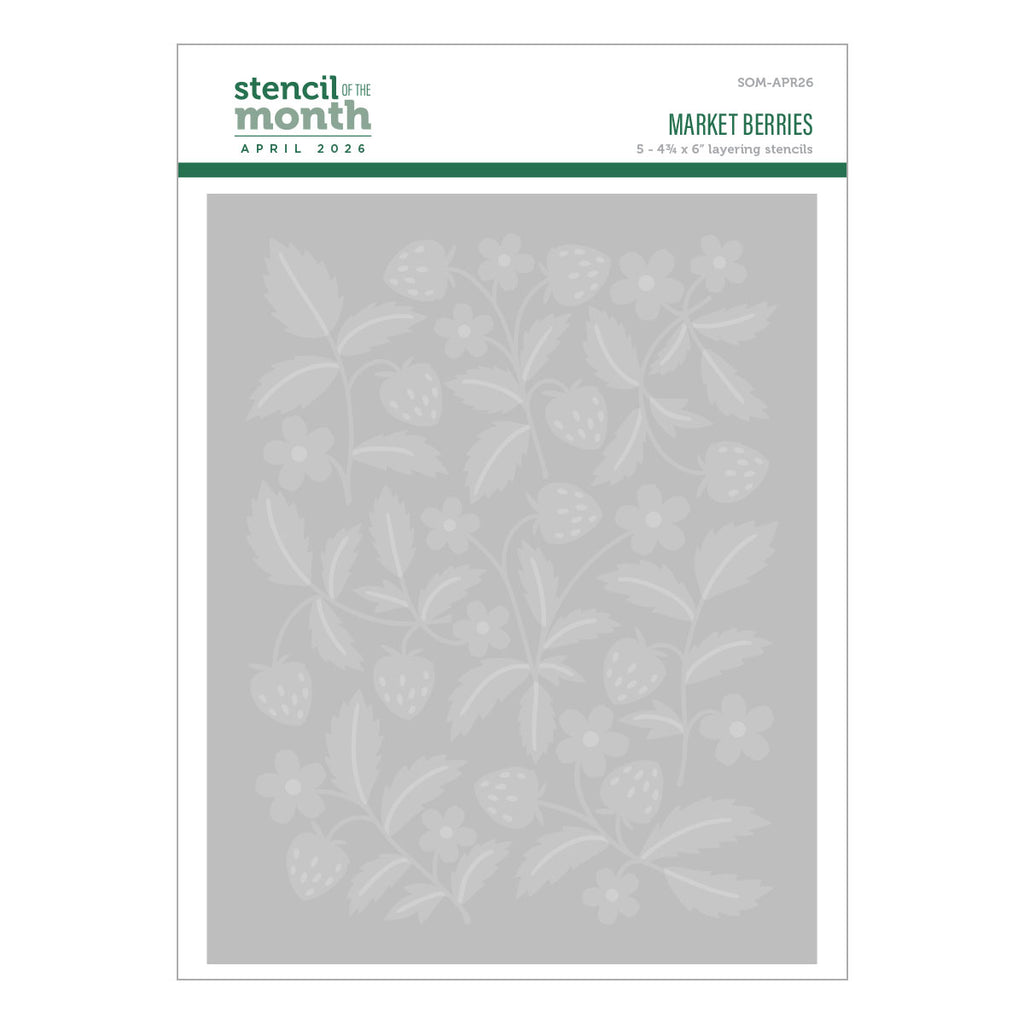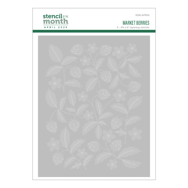 This month's Stencil "Market Berries" is perfect for making cards, decor, and more.