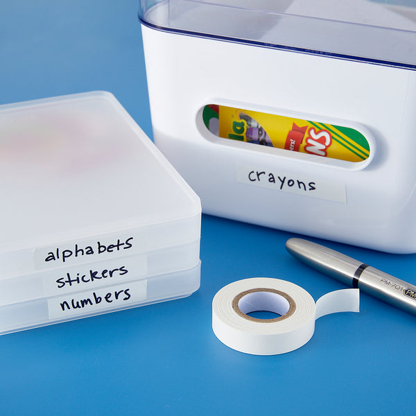 White Labeling Tape ½” comes in a 10.9 yard roll with a width of 0.50-inches. Perfect for labeling supplies on organizational products such as Storage Pouches, Craft Stax Trays, Totally Tiffany Storage Items, etc. So versatile that it can be used all areas of your home…Organize your kitchen pantry, bathroom and beyond! It sticks securely and removes cleanly without adhesive residue.