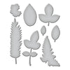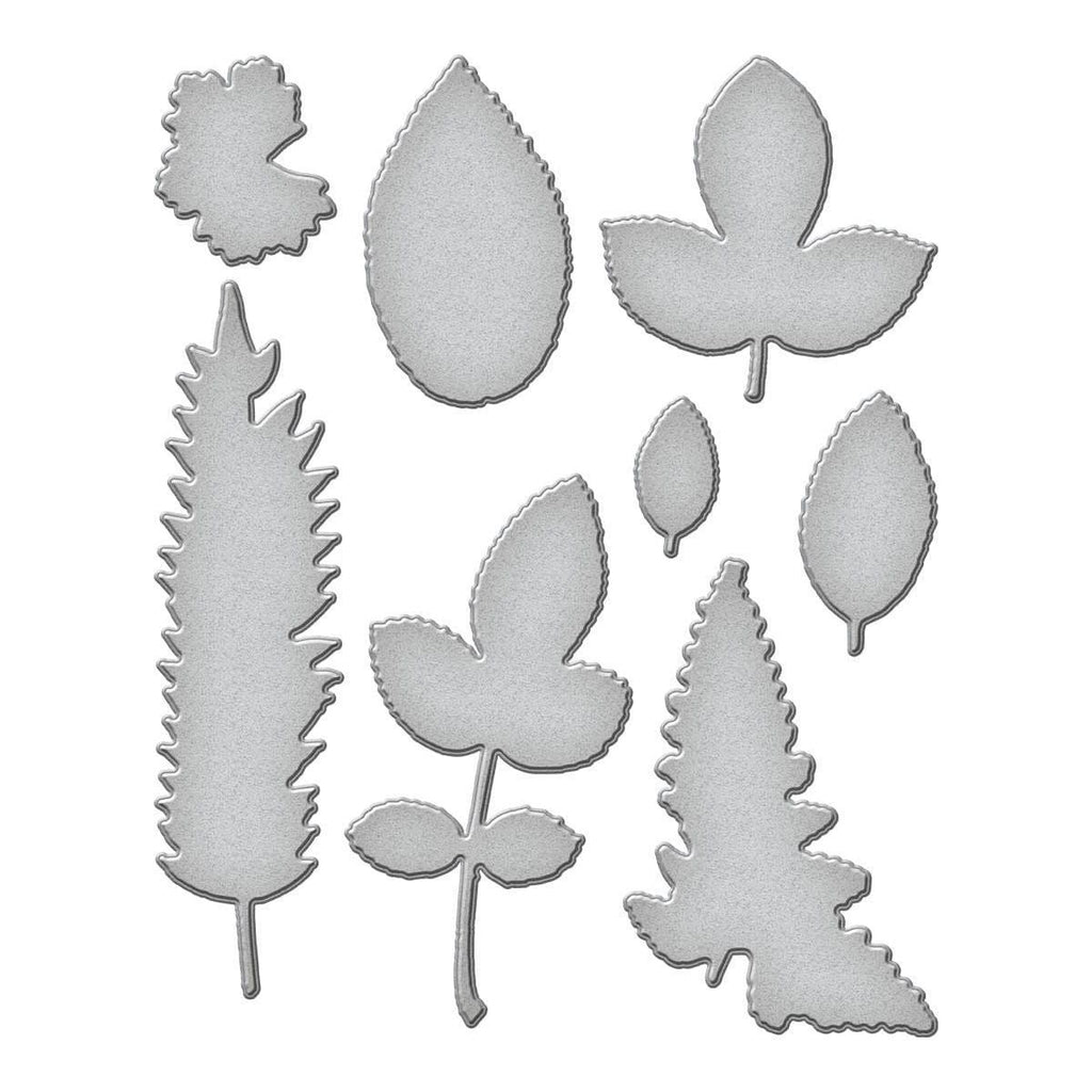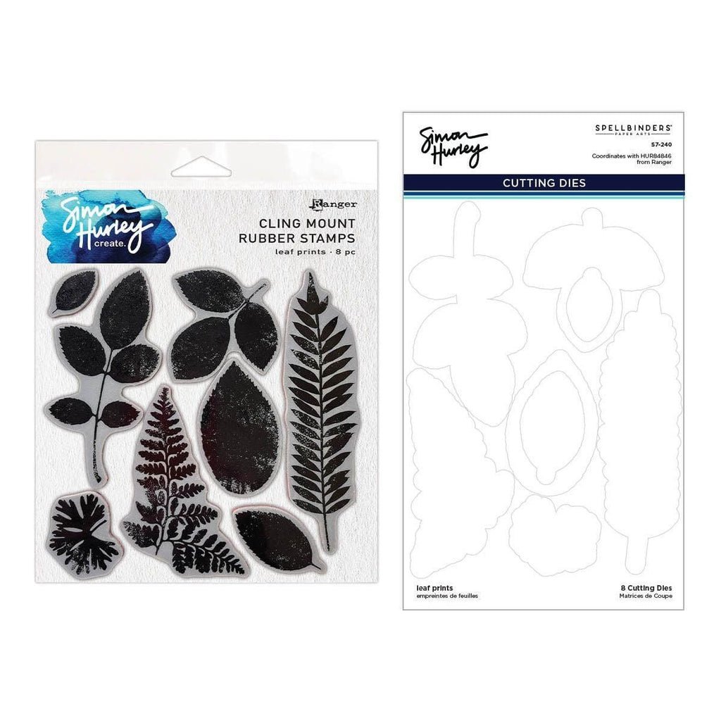 Leaf Prints Stamp and Die Bundle by Simon Hurley in collaboration with Spellbinders includes S7-240 Leaf Prints Etched Dies and its coordinating HUR84846 Leaf Prints Cling Stamp Set. There are eight different kinds of leaves and sprigs shapes. These pieces are perfect to accent and layer with any floral motif in your projects.