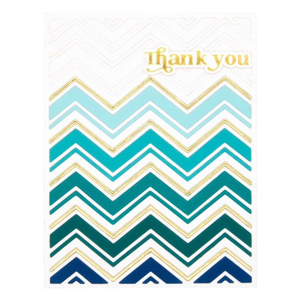 Zig Zag ChevronEtched Dies are part of the Photosynthesis Collection by Simon Hurley and has a set of two thin metal cutting dies. For the chevron lovers, this is a fun set to have! Nest the outline and the insert together to die-cut for a single layer. But for more interest and depth, die-cut a second layer and flip the design…just wow!