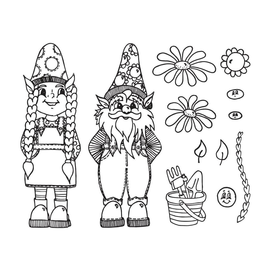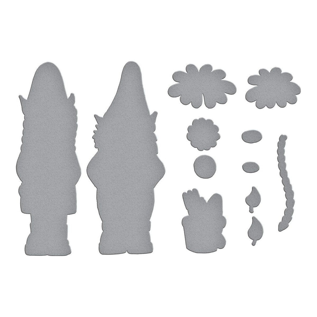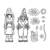 Gnome Sweet Gnome Stamp and Die Bundle are from Stamps & Dies by Dyan Reaveley. It includes Gnome Sweet Gnome Etched Dies and DYR-10011 Gnome Sweet Gnome Cling Stamps. Together, they create a whimsical gathering of three gnomes and their love of hats! It even has two sizes of gnome trees for a unique backdrop. Use the cling stamps with an acrylic stamping block.