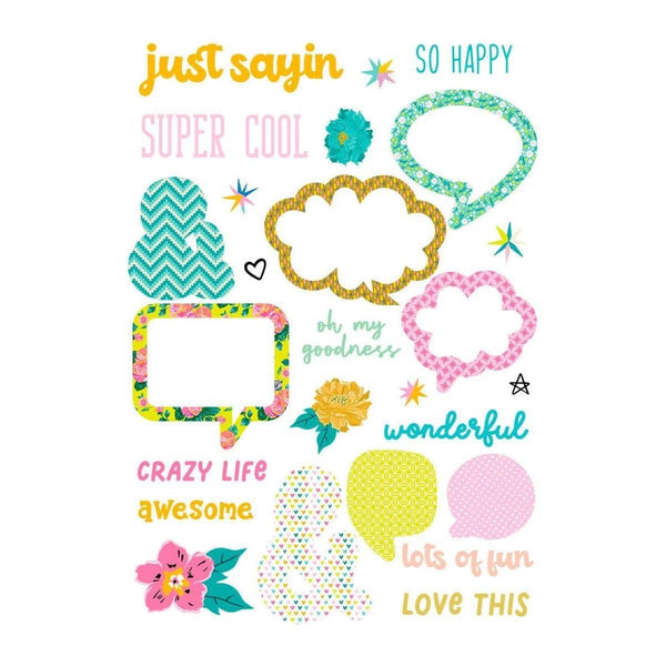Just Sayin' Sticker Pack puts words together for a phrase, subtitle, title, and more on projects. Use them individually or frame them with speech bubbles, labels, and ticket shapes. Need another accent? No problem! The pack includes lovely floral accents to finish off your projects. This pack of four sheets contains a total of 167 stickers.