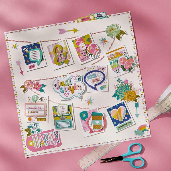 The Just Sayin’ Collection is full of bright colors and fun with a vintage vibe in every piece. Document everything you want to say in this debut collaboration from designer Kelly Bangs and Spellbinders!