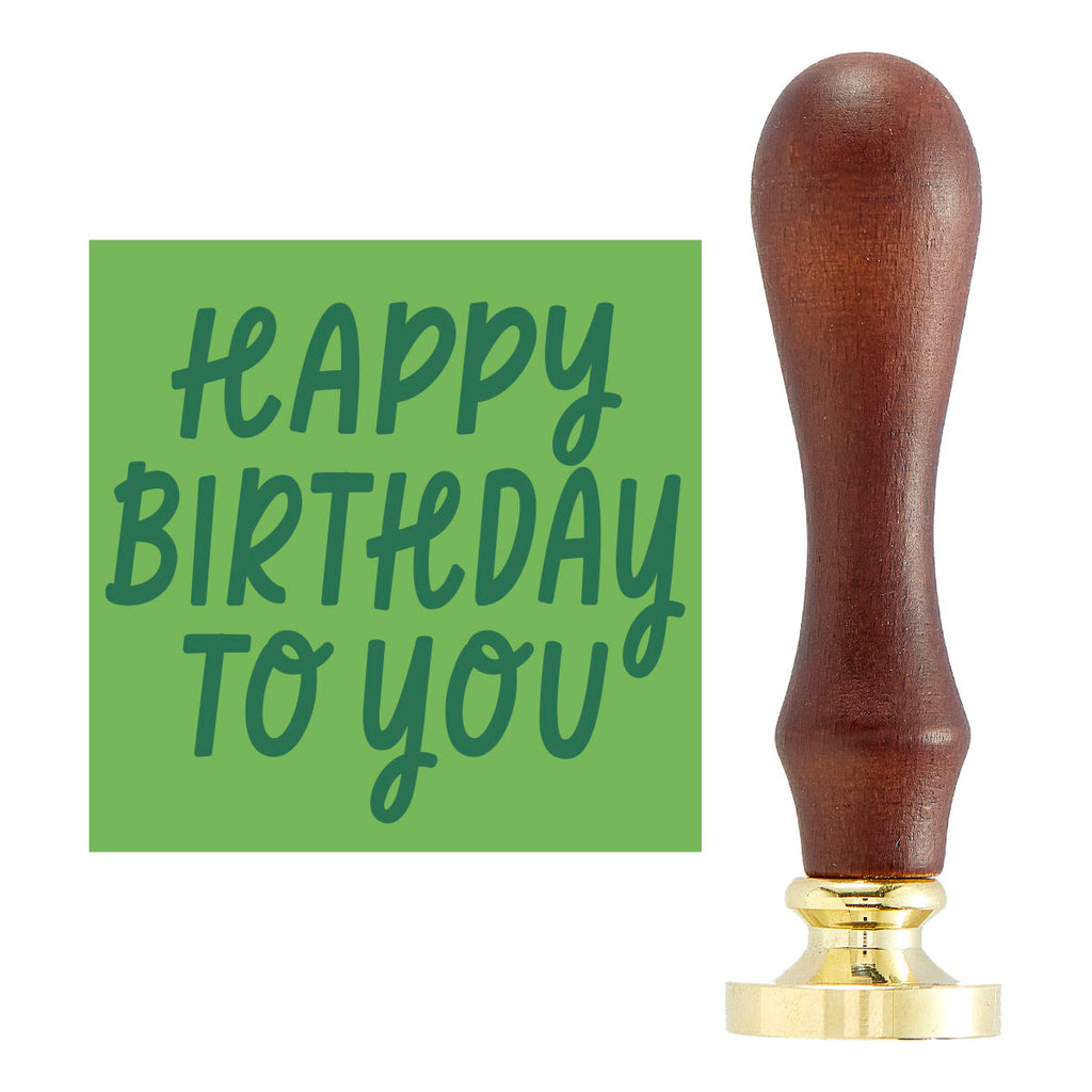Happy Birthday to You - Wax Seal of the Month (Seal Stamp Only) It has one wooden handle that supports a 1" square brass seal stamp design on its end.