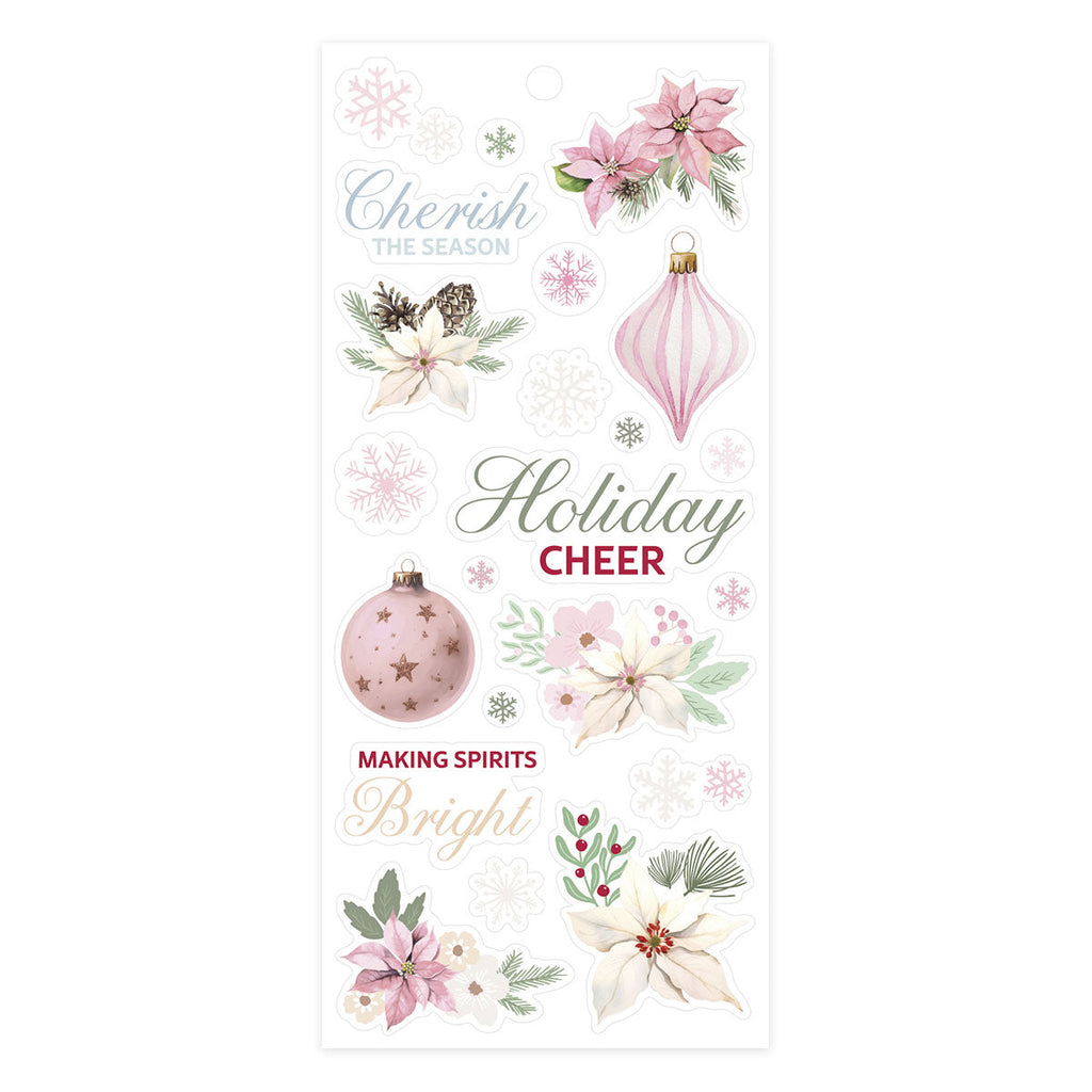 Rosie's Studio - Peppermint Twist Sticker Book comes in six sheets that are full of sentiments, letters, seasonal icons, label shapes and washi tape strips. Mix and match from this book to give you interest and beautiful accents on your cards, scrapbook pages, planner and more!