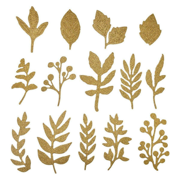 Glitter Die Cut Foliage are from the Celebrate the Season Collection and includes 24-piece pre-cut gold glittered stems, sprigs, and leaves that will add sparkle to your paper crafting creations.
