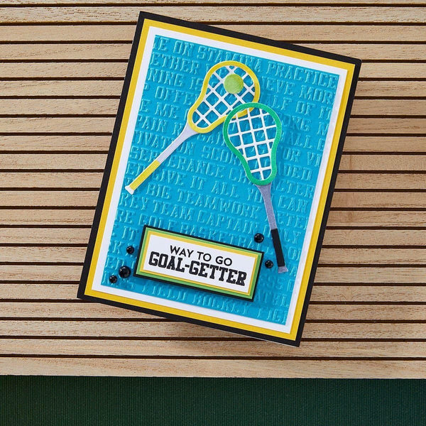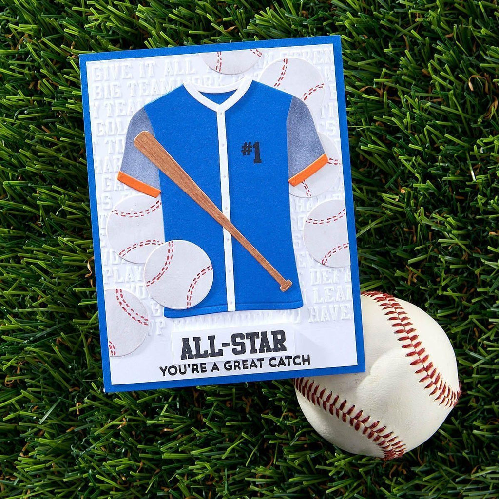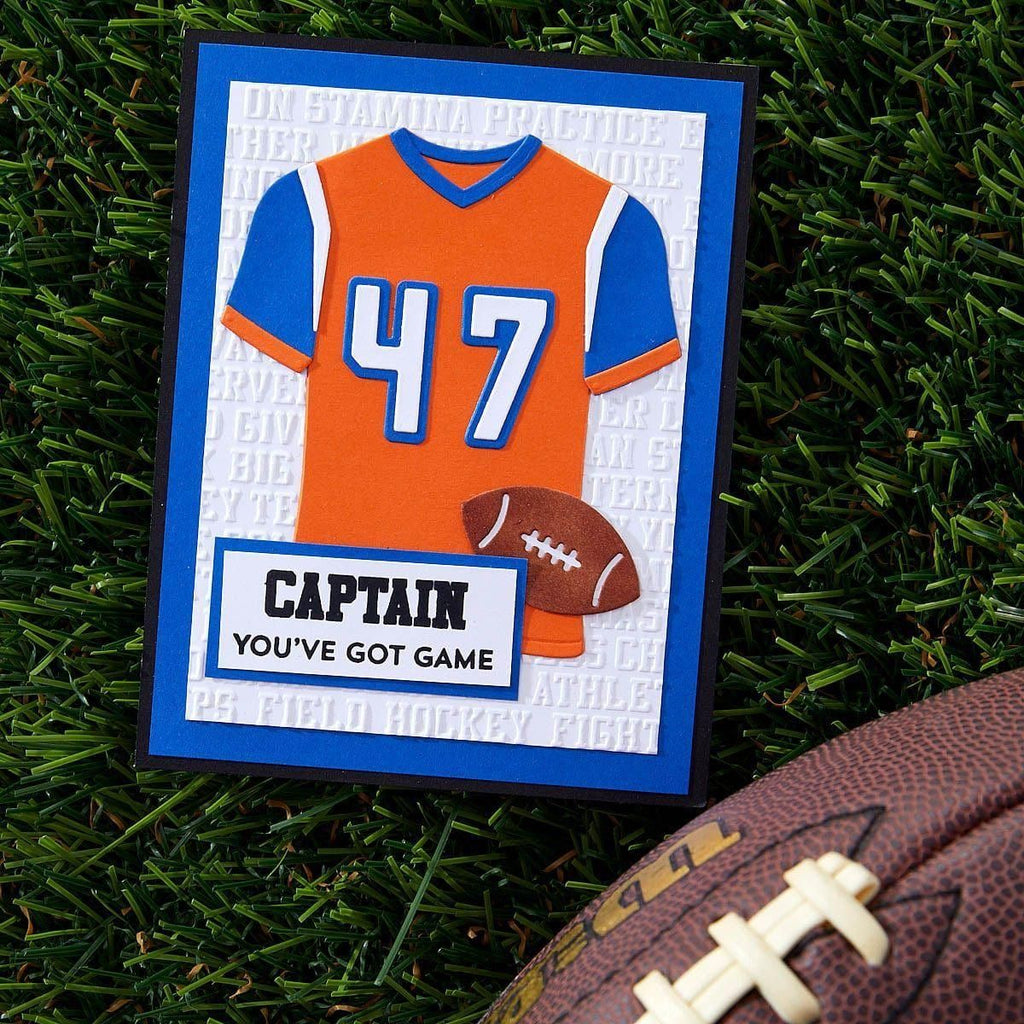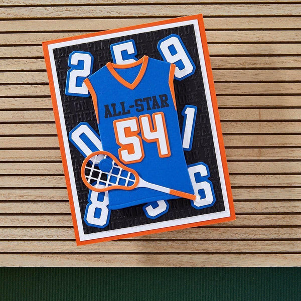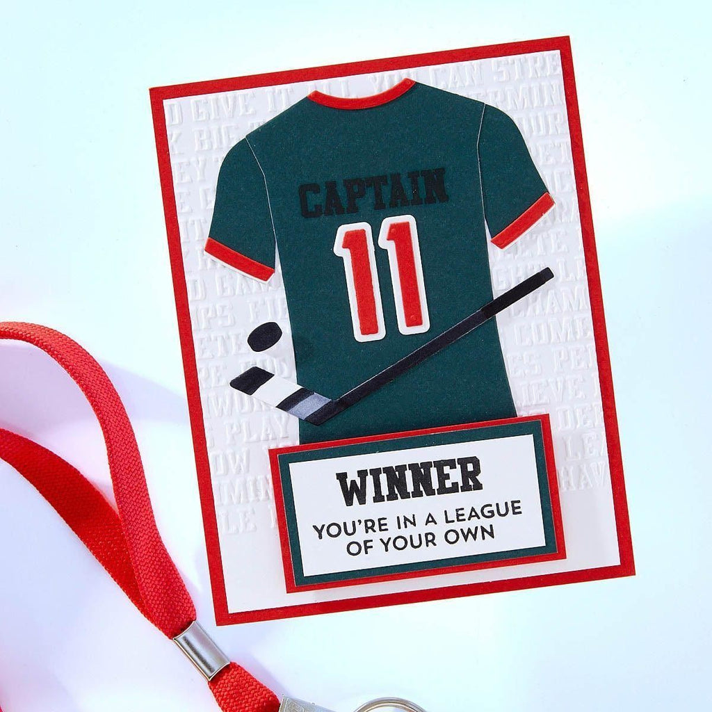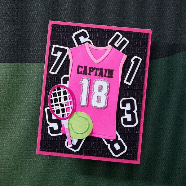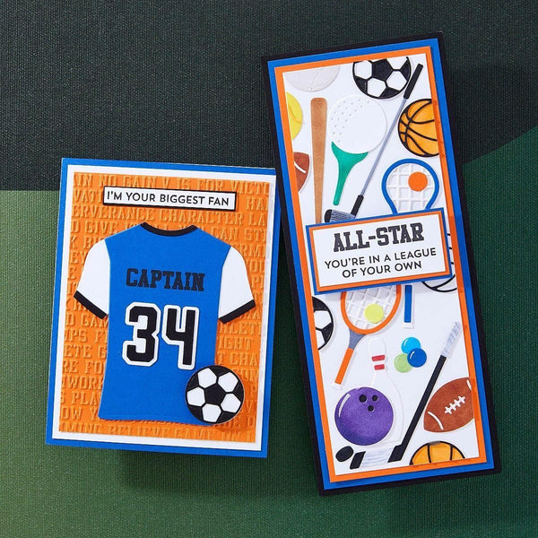 The Game Day Collection is Justine Dvorak’s first collaboration with Spellbinders. From sportswear, numbers, accessories, themed-sentiments and even an embossing folder, it has it all to create and customize projects for your sports fan!