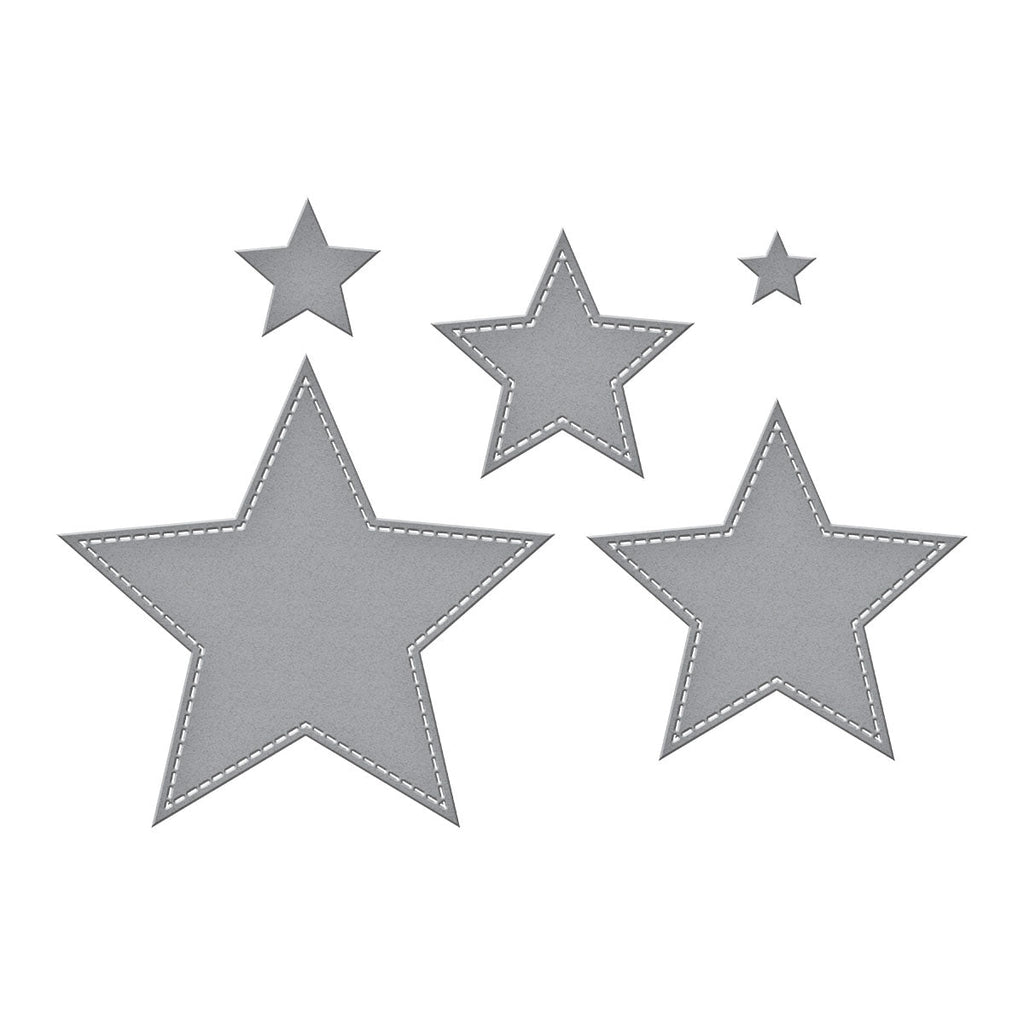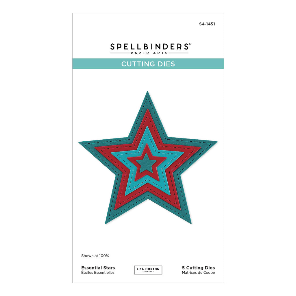Essential Stars Etched Dies are part of the All About Christmas Collection by Lisa Horton. Together, the set of five thin metal cutting dies cuts solid shapes to anchor elements, make shaped cards or nest two different sizes to create frames. Many wonderful designing ideas!