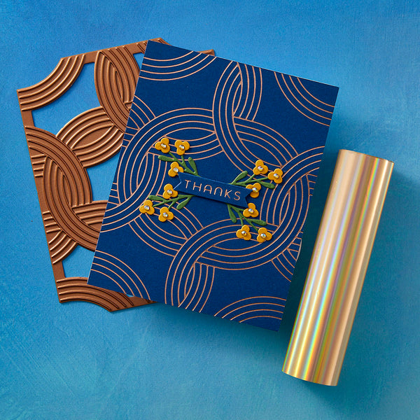 Elliptical Weave - January 2025 Glimmer of the Month: Introduce a contemporary touch to your projects with the January 2025 Glimmer of the Month, Elliptical Weave. This sleek and modern design features 6 hot foil plates that create a mesmerizing interwoven pattern, perfect for adding depth and elegance to your crafting.