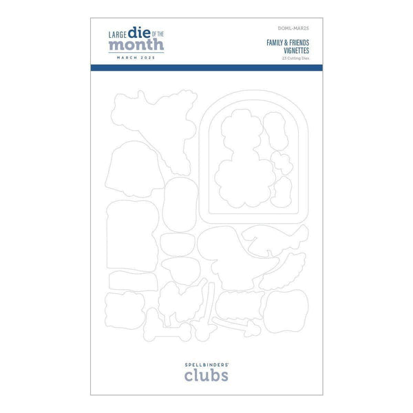 Family & Friends Vignettes - Celebrate the special moments shared with loved ones using the Family & Friends Vignettes die set, featured as the March 2025 Large Die of the Month. This charming 23-piece set includes everything you need to create heartwarming scenes—featuring an arched frame, blooming florals, and playful character elements like a lovable dog, an adorable dinosaur, and cozy accessories. Perfect for crafting cards, scrapbook layouts, and keepsakes, this set brings personality and warmth to every project. Layer, mix, and match the pieces to create delightful, dimensional designs that capture the joy of family and friendship.