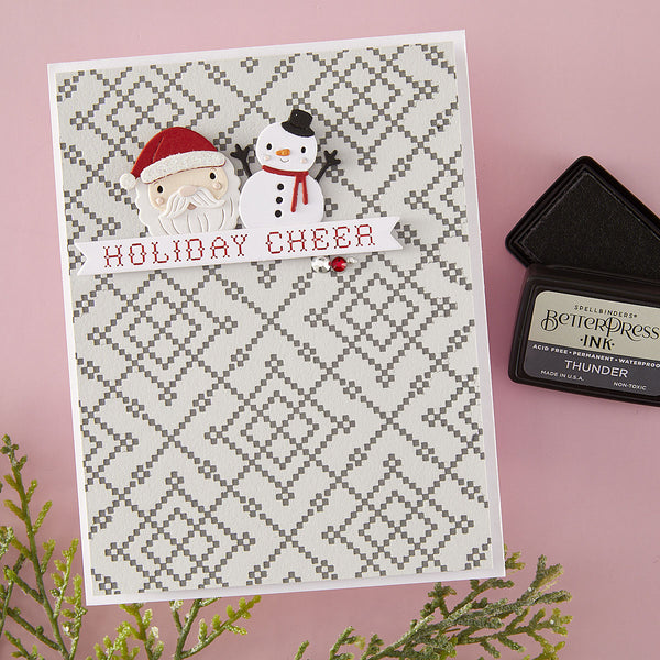 Add a touch of homespun holiday charm with the Festive Press BetterPress Plate Set. Inspired by traditional cross-stitch patterns, this beautifully detailed background plate brings cozy texture and heirloom appeal to your seasonal projects—without ever picking up a needle.
