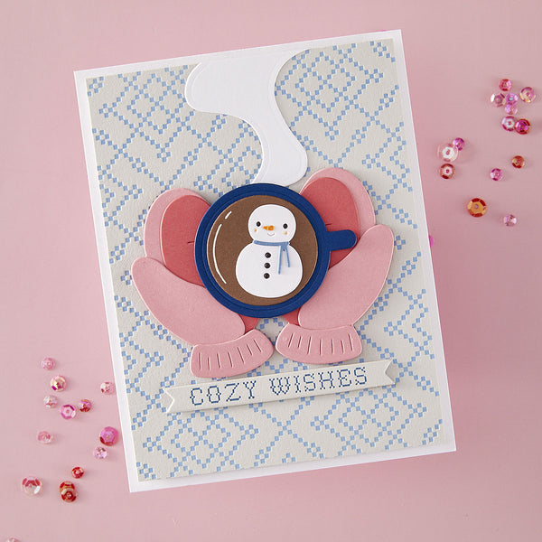 The set includes two stitched-style sentiments, “Cozy Wishes” and “Holiday Cheer,” designed in a charming banner format for a polished finish. Perfect for pairing with die-cut characters or layered elements, this plate adds the look of hand-stitched warmth to cards, tags, and beyond.