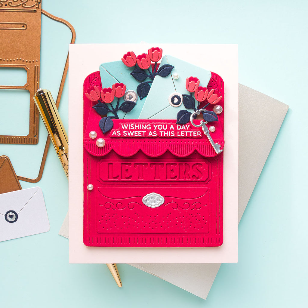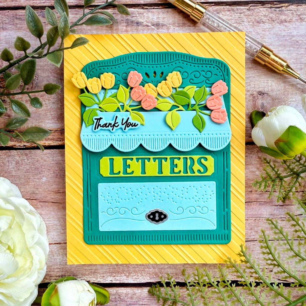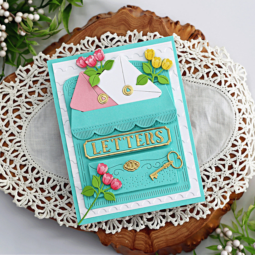Lock & Key Mailbox – April 2025 Large Die of the Month Add vintage charm and heartfelt flair to your creations with the April 2025 Large Die of the Month: Lock & Key Mailbox. This elegant 14-piece die set builds a dimensional, old-fashioned mailbox complete with intricate details, a working mail slot, a decorative lock and key, and coordinating floral embellishments.