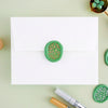 Lush Leaf - Wax Seal of the Month (Seal Stamp Only) It has one wooden handle that supports a 1" x 1.25" oval brass seal stamp design on its end.