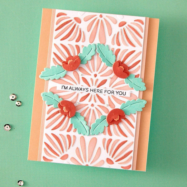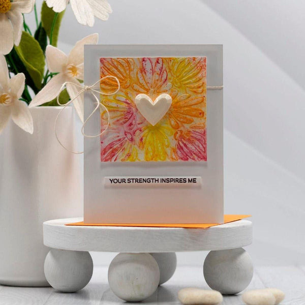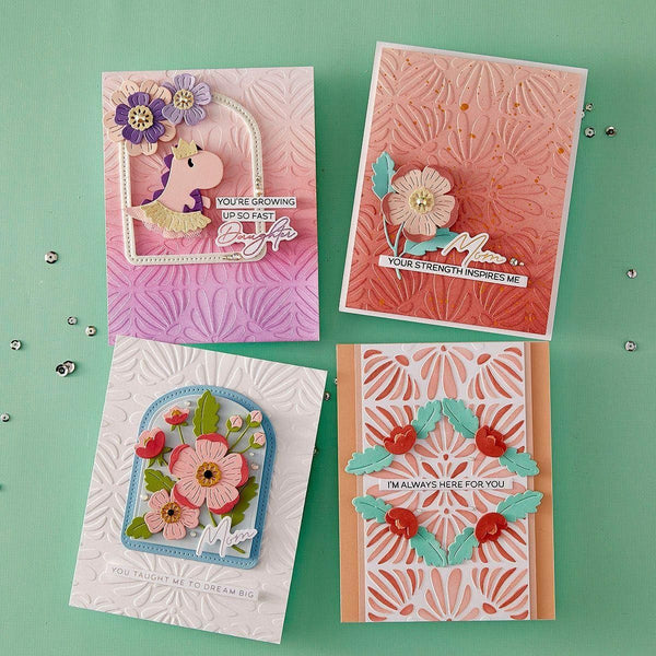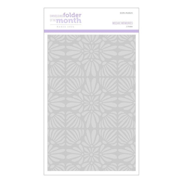 Mosaic Memories - Embossing Folder of the Month released March 2025 to our Embossing Folder of the Month Club. This large embossing folder can make slimline, 5.5? x 8.5?, and a variety of sized projects. Perfect for adding texture and dimension to your card projects.