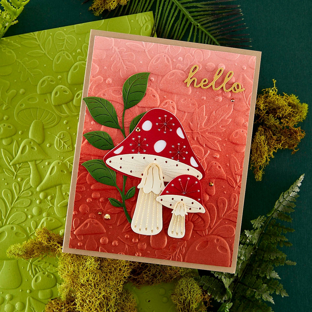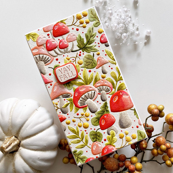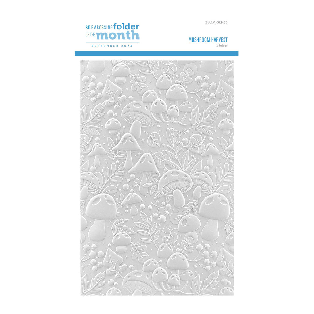 Mushroom Harvest 3D Embossing Folder of the Month released September 2023 to our Embossing Folder of the Month Club. This large embossing folder can make slimline, 5? x 7?, and a variety of sized projects. Perfect for adding even more texture and dimension to your card projects.